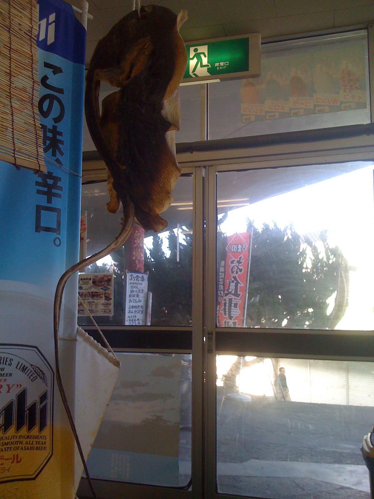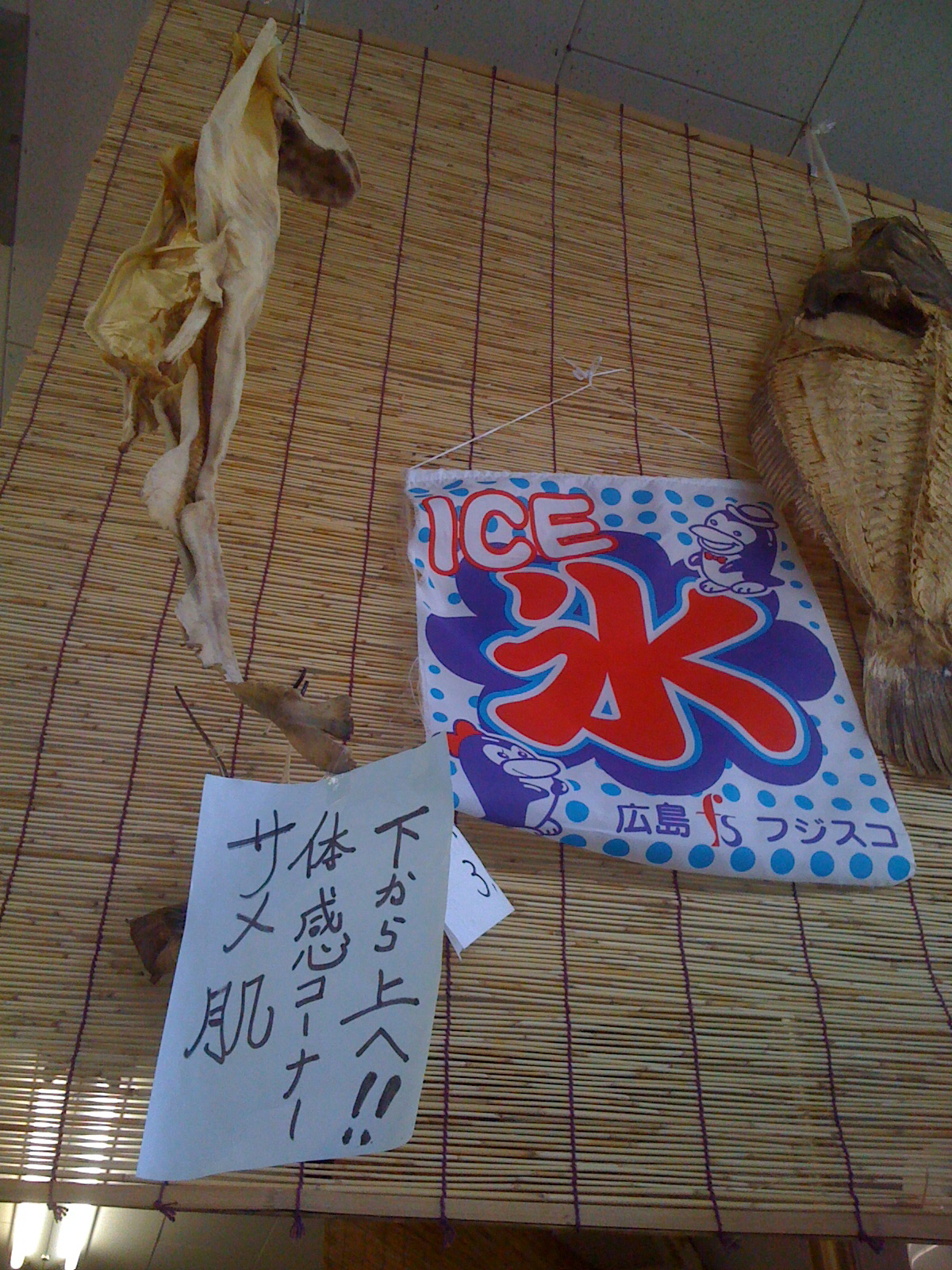 そこで目にしたものは見た事の無い生き物の死骸と鮫肌体感コーナー。
