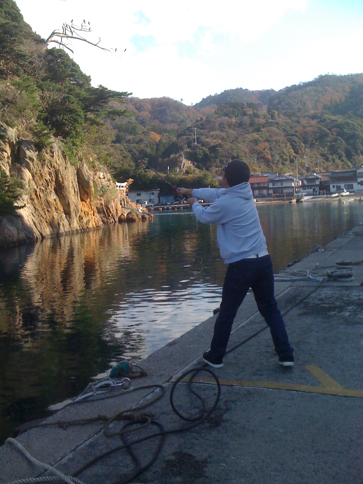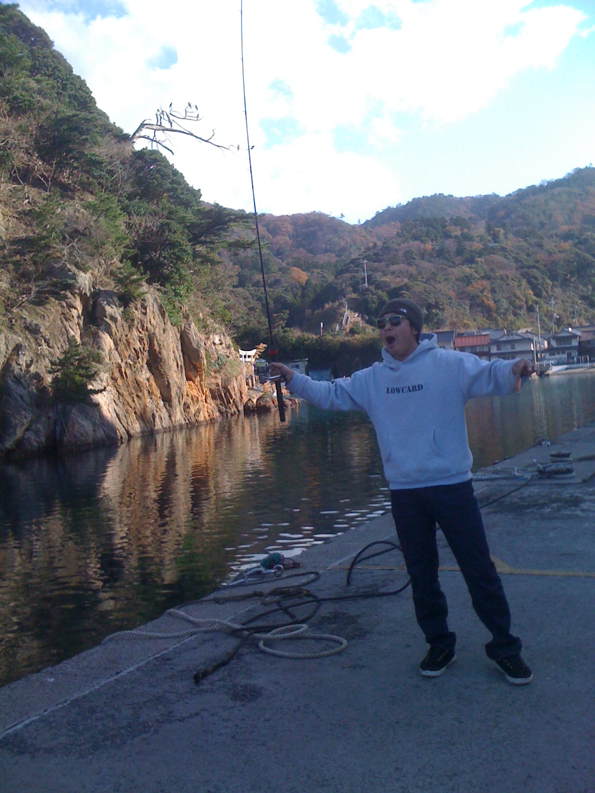 紅イカ (ソデイカ)を捕獲しようと(1パイ1万くらいで売れるとか聞いた)猛者達が平日の真っ昼間から大勢集っておられましたが、空気はかなり緊迫した模様でした。(*かつてイカの取り合いに勝利した漢は後日、いつもの様にイカを求め夜分堤防沿いを歩いていたところ何者かに海に突き落とされたと言う出雲神話は実話だったと現地の空気で察知)