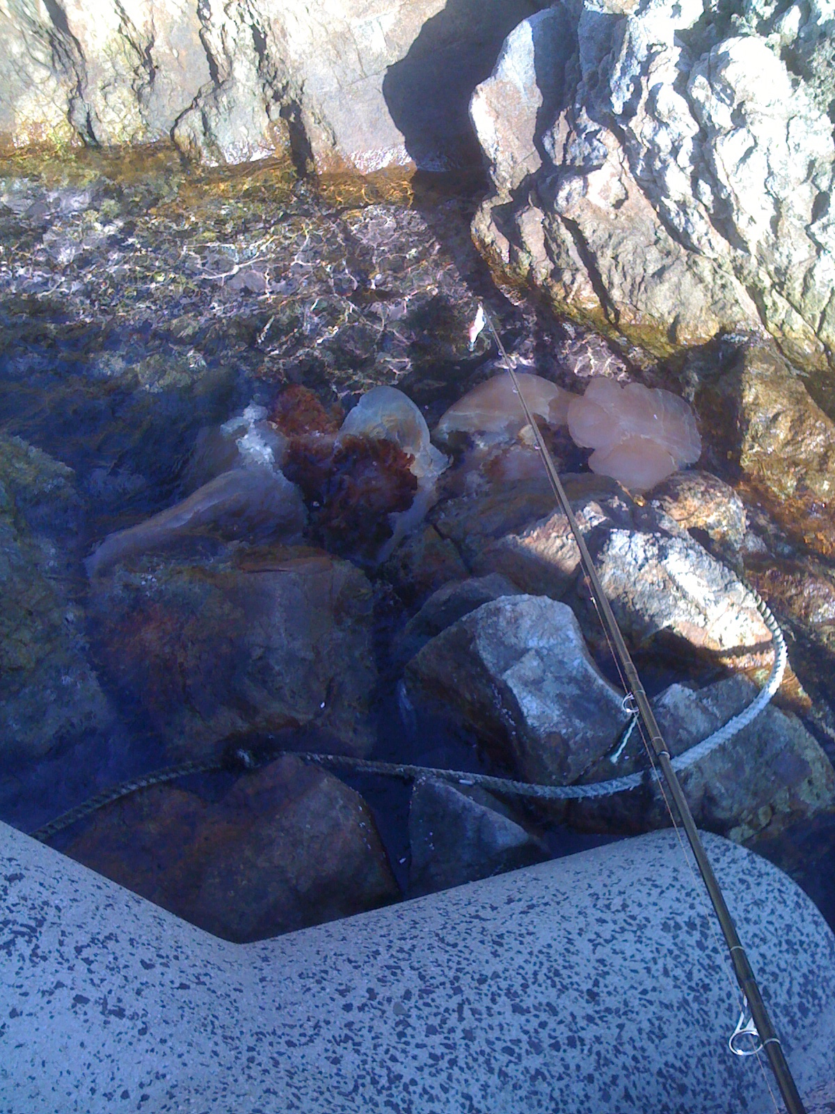 釣れないからクラゲを見つけては写真撮って石投げての繰り返し。