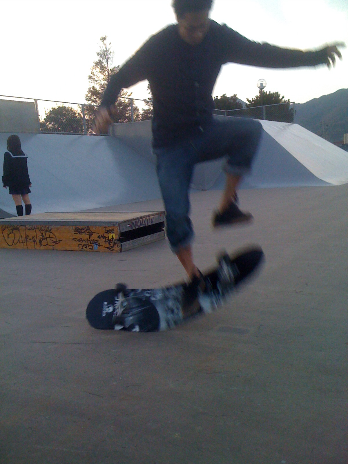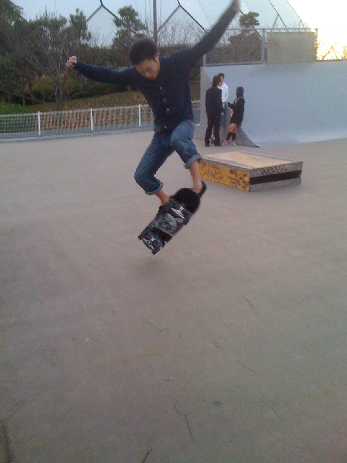 旧友に遭遇。マイデッキでフリップの撮影を依頼。