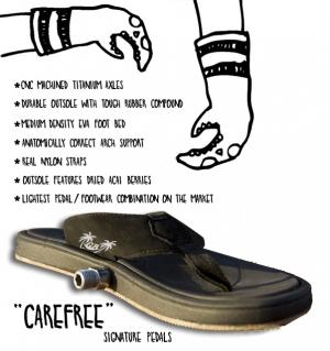 GB(ギャレット バーンズ)さんは何時もビーサンという事で、T-1はこんなの開発しました。これからの時期にピッタリ。爪剥がしには気を付けましょうね!10 feetオーバーのランプをビーサンでテールスライドとかをする人はギャレットぐらいですからさすがですね!GB曰く「僕のライフスタイルにマッチするペダルが欲しかった・・・」理由で作ったそうです!こちらサイドとしてはマジなのか?冗談なのか?よく分かりません・・・。