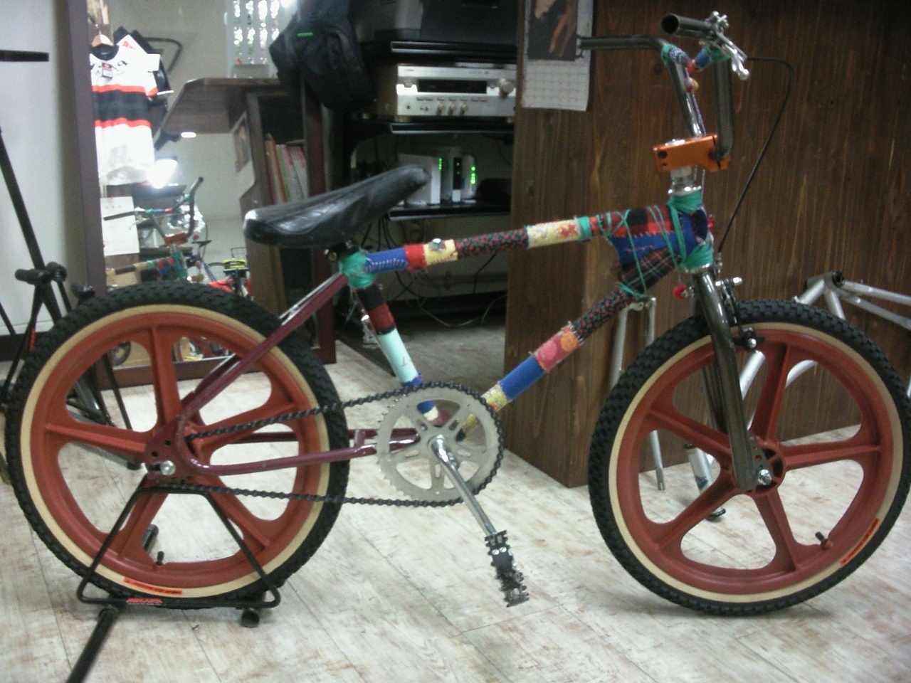 米子のdeco (http://deco-dgn.com/?mode=cate&cbid=143379&csid=5)のオーナーからの依頼マシーン。個性的なbmx。乗りにくさ追求らしいです。本人も納得でよかったです〜。パッチワークチャリにするのはすごい。興味のある方はdecoにお問い合わせを〜。