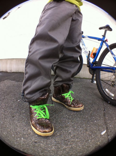 マウンテンバイク(純正ブロックタイヤ)、ビンディング無しでもこの幸せの靴ならロードバイクと同等にペダリング可能ってことで装備していたwa-da選手。(初の100キロ)