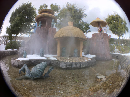温泉があるぞ!!って接近するが違った。まんまと妖怪達にだまされる。