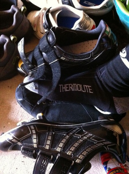 ゆっくり少しの距離でロードシューズのクリートのあんばいをってシューズカバー無しで走ると激寒。