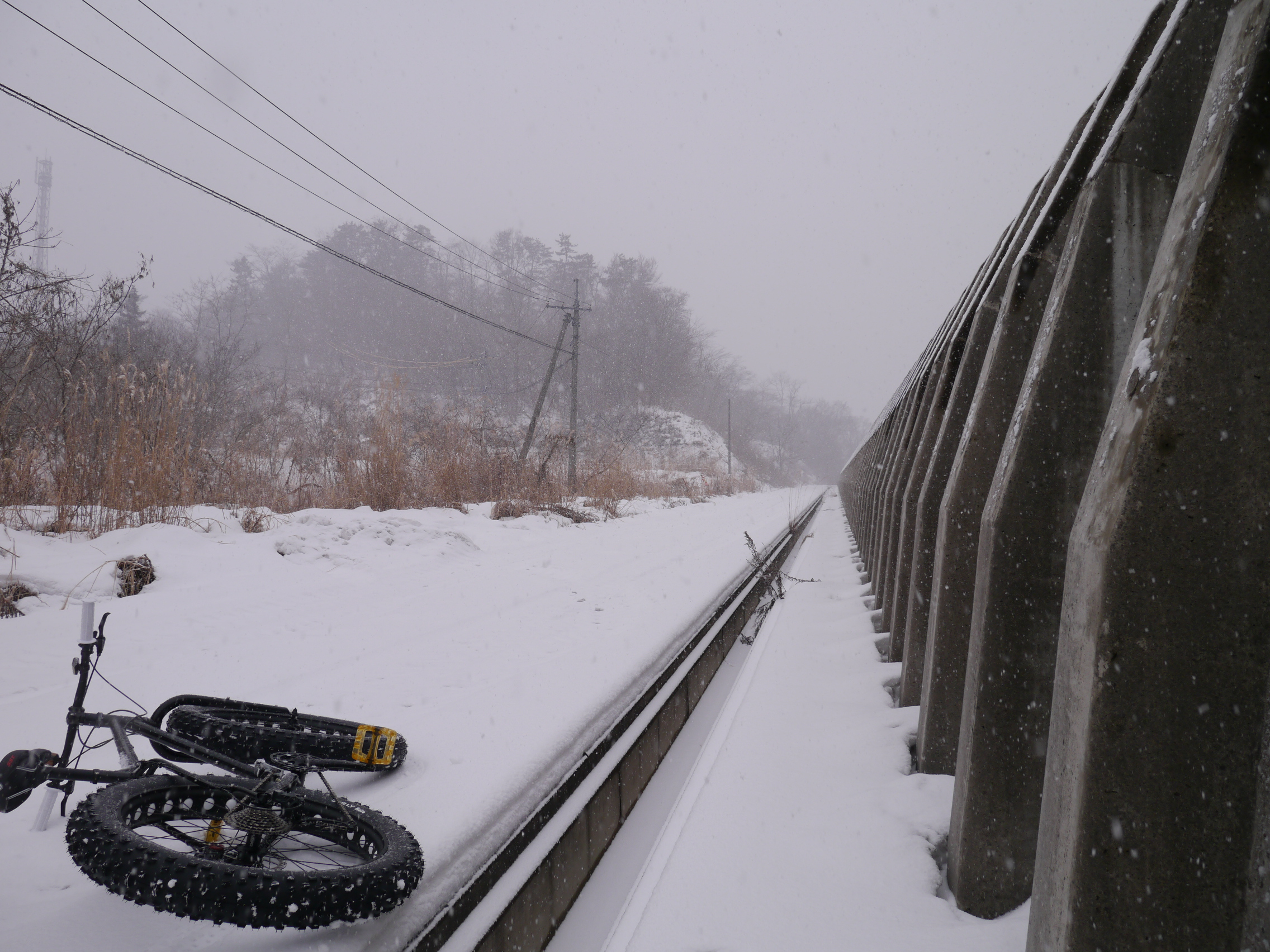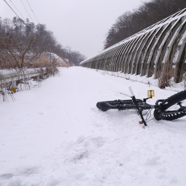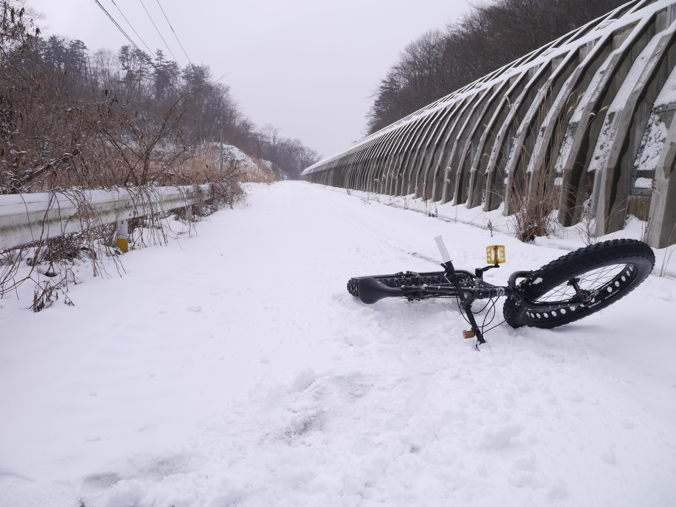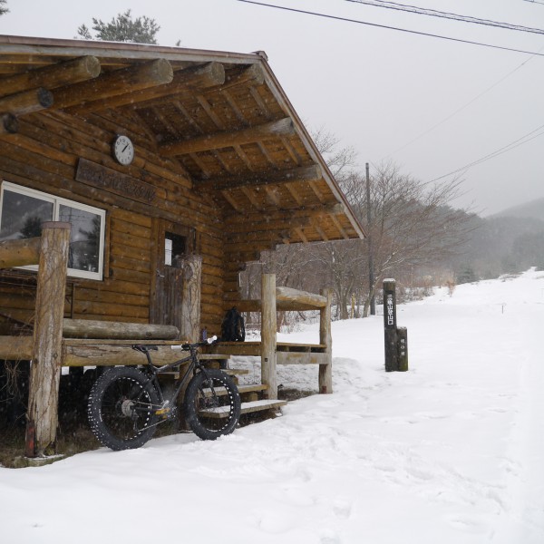 雪が積もり始めた山間部にさしかかると自転車に乗り換え!!