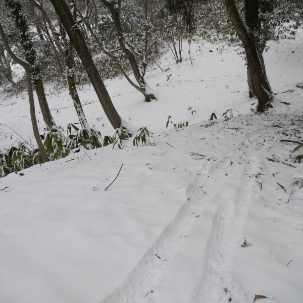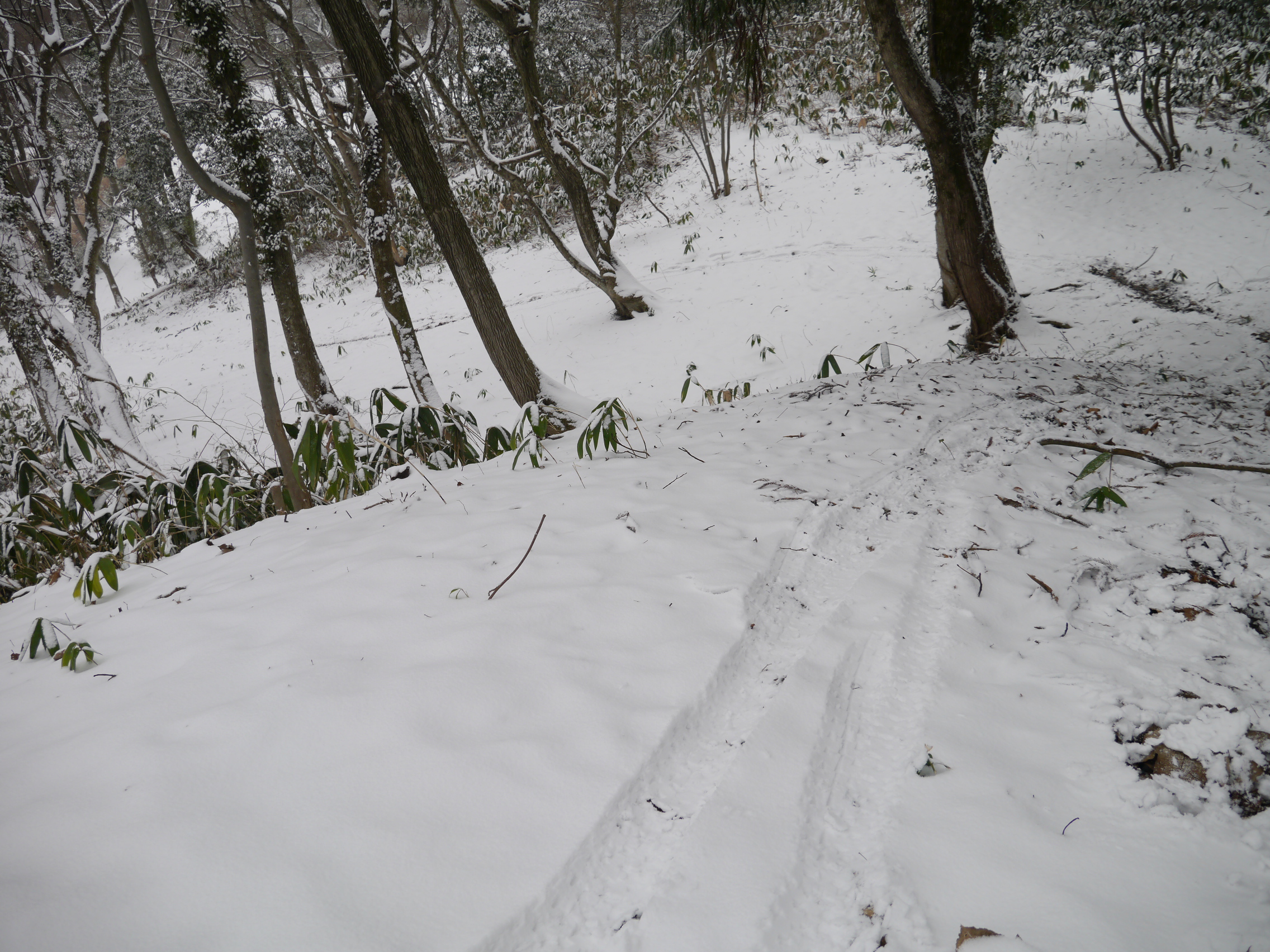 来るときに通った道はさらに雪がつもり面白い下りに!
