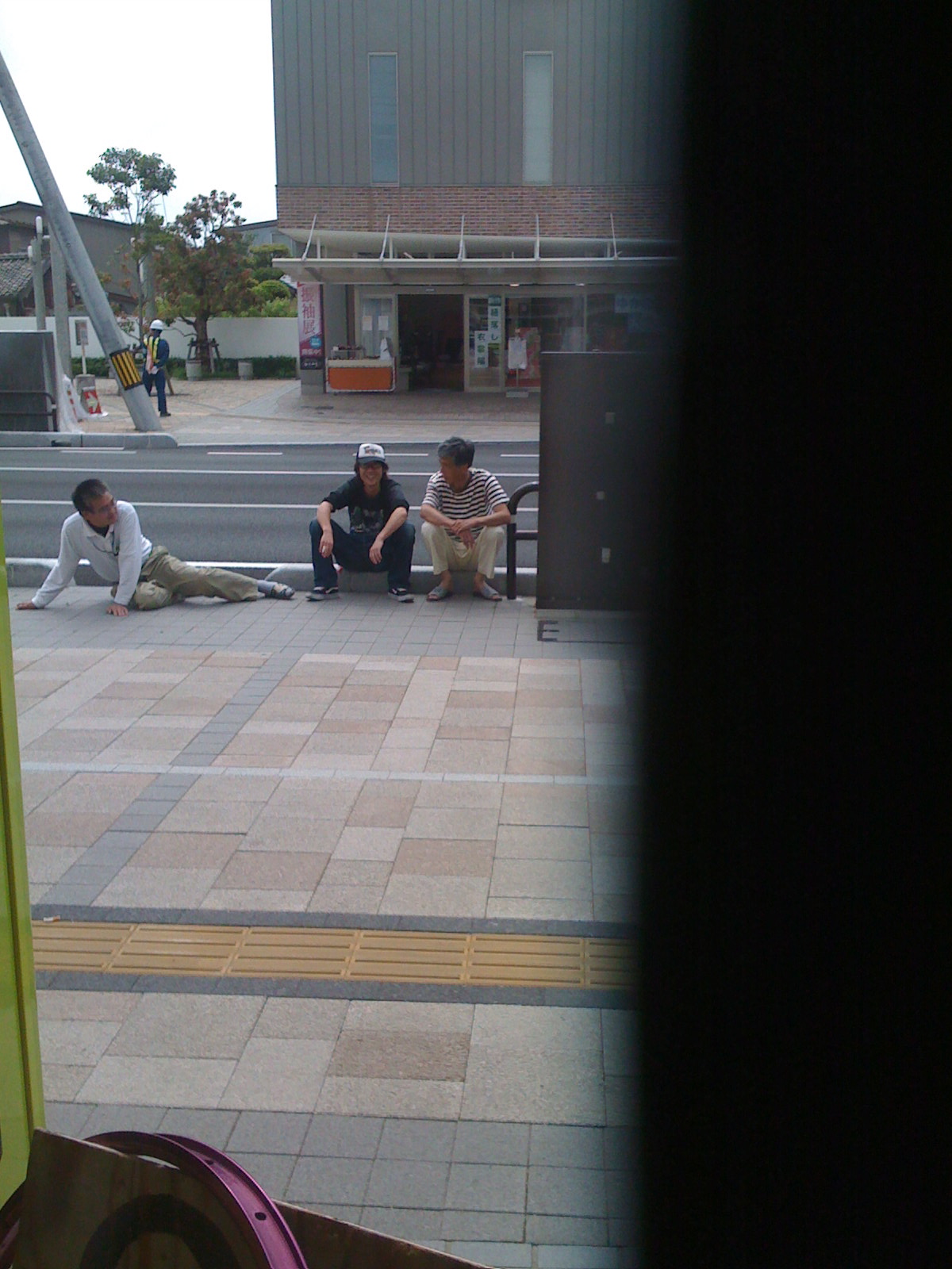 ライダーと近所のおじさん達はみんな仲良し。歩道はポカポカです。