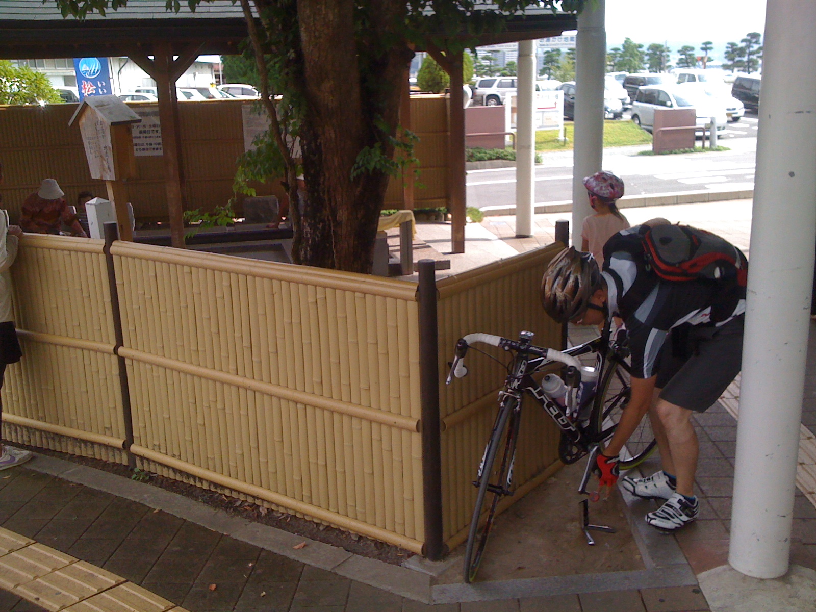 偶然にもお客さんに遭遇。50キロくらい走り足湯でブレイク。帰りも50キロは走る模様でありました。エンジョイしとりますなぁ〜w