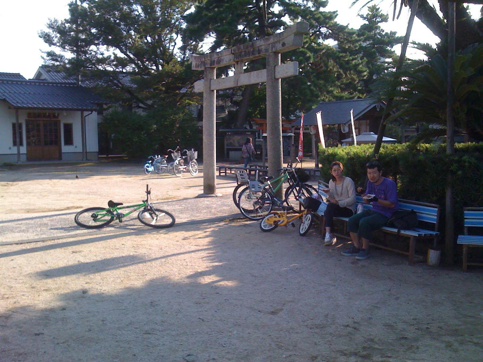 はてさて、我々も楽しもうとショップやら公園、最後はたこ焼きが250円で食える神社までタイムスリップ。