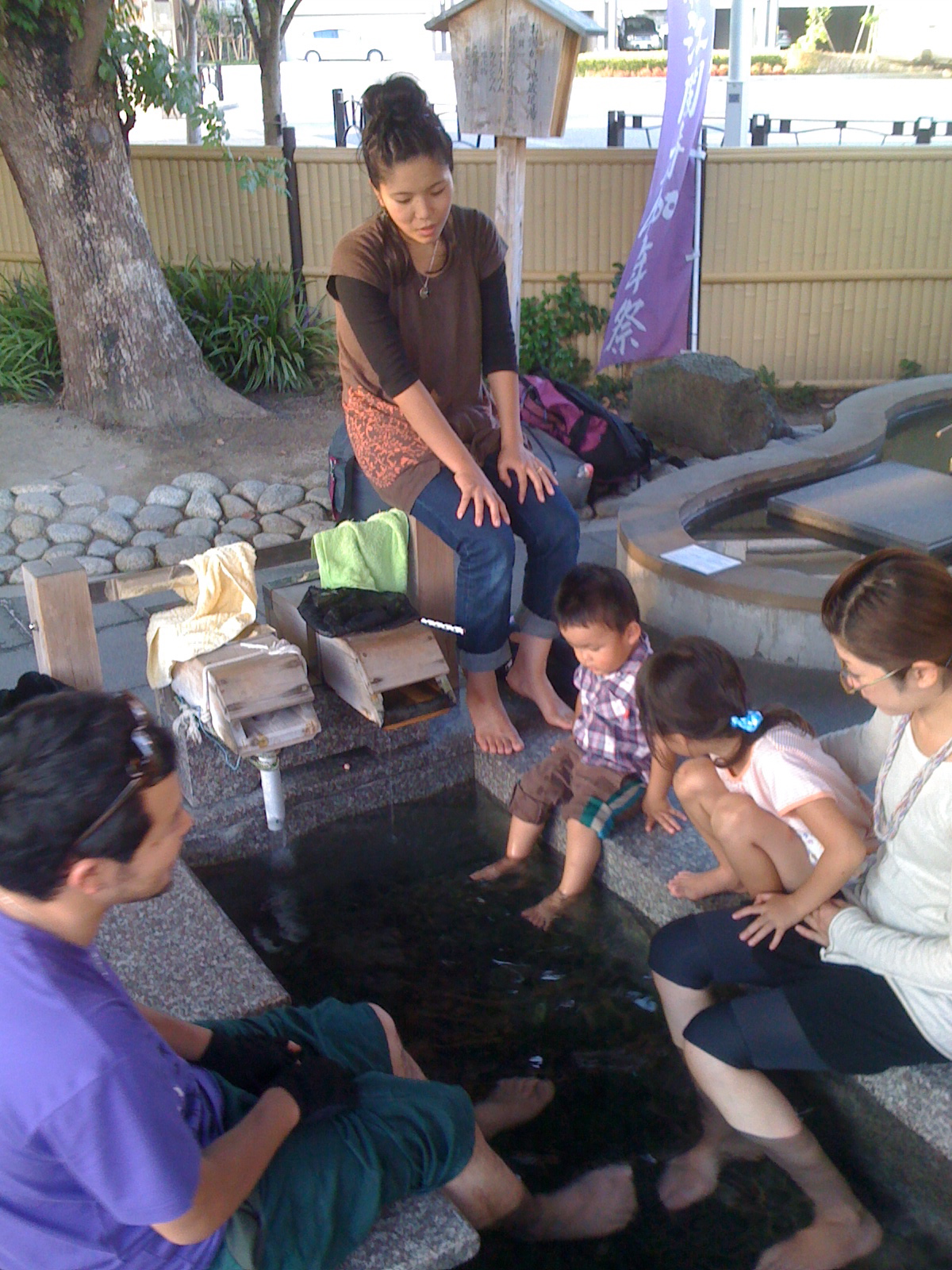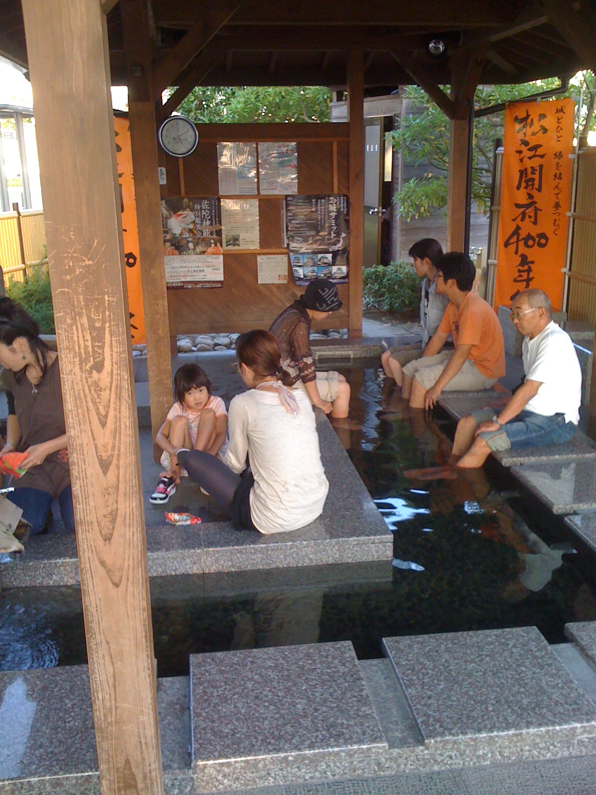 一番熱いお湯が出て来る所に足をつける。しかししばらくすると気持ちよい。