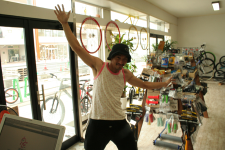そしてつい先日は突然大阪よりチャリ屋(20inches bike shop)を経営しているjinjinが来店。